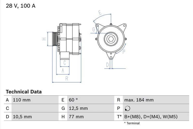 | Alternator charging current (A) | 100 |