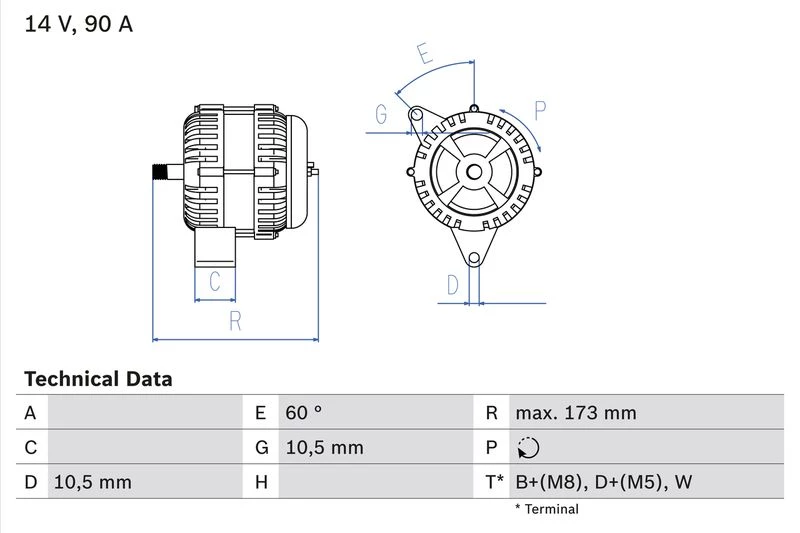 | Alternator charging current (A) | 90 |