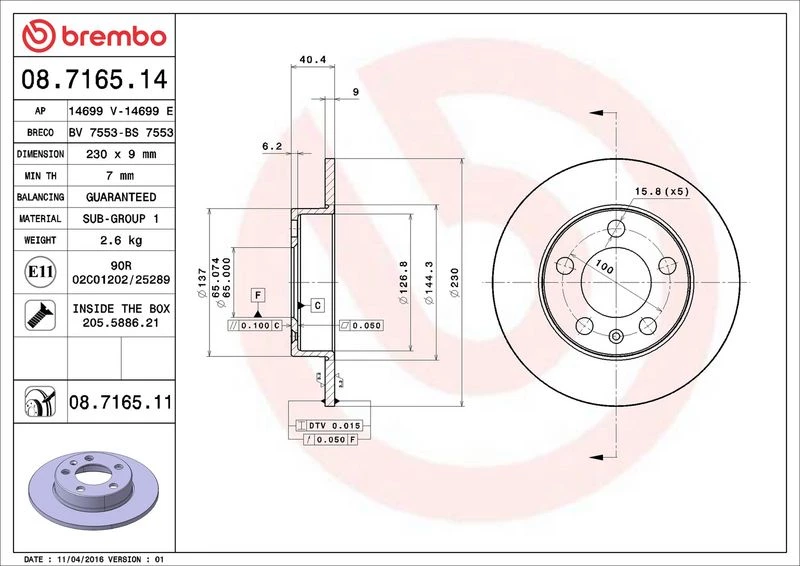 | Brake disc thickness (mm) | 9 |