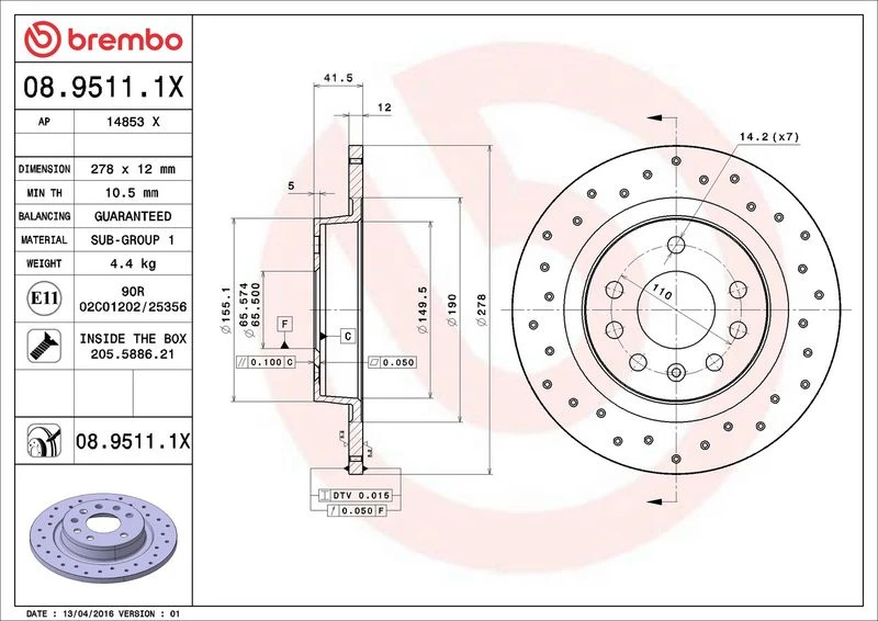 | Tightening torque (Nm) | 110 |