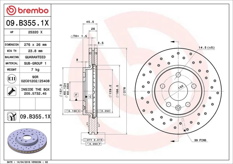 | Brake disc type | perforated/vented |