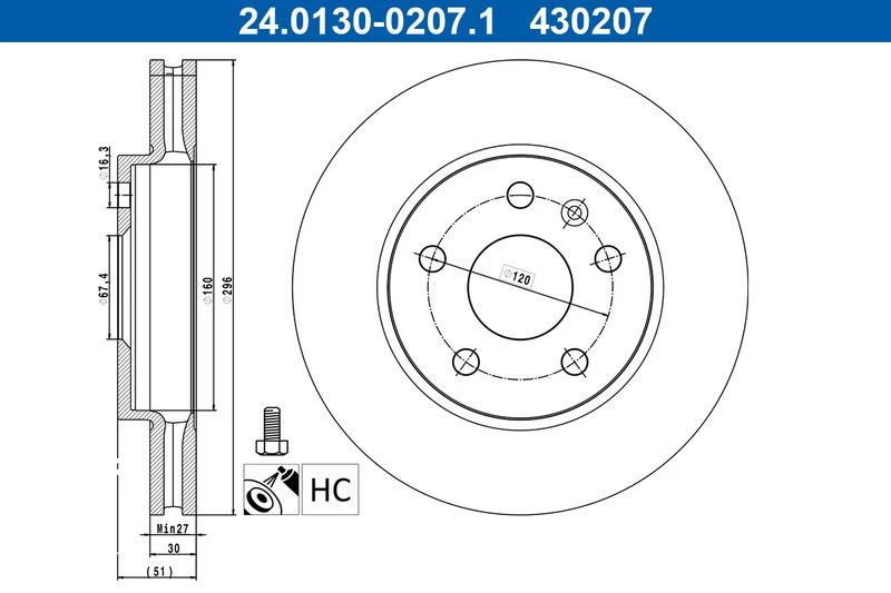 | Bolt hole circle Ø (mm) | 120.0 |