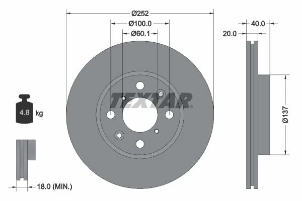 | Bolt hole circle Ø (mm) | 100 |