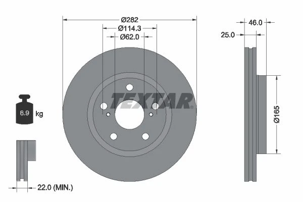 | Outer diameter (mm) | 282 |