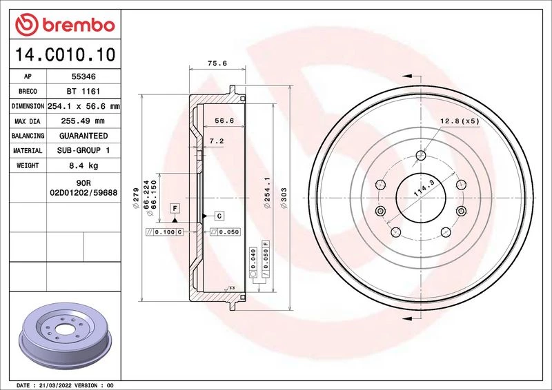 | Total brake drum height (mm) | 75.8 |
