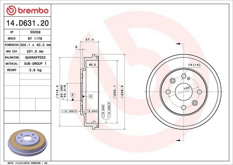 | Outer brake drum diameter (mm) | 200.1 |