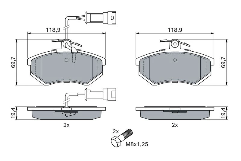 | Wear warning contact | with integrated wear sensor |
