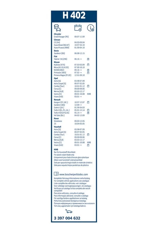| Wiper blade type | bracket wiper blade |