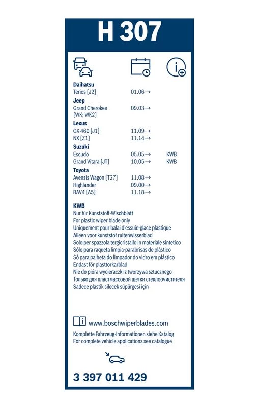 | Wiper blade type | bracket wiper blade |