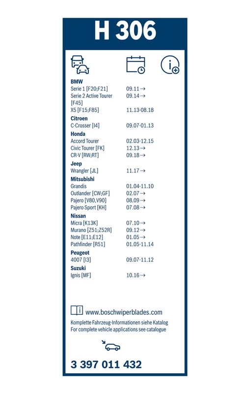 | Wiper blade type | bracket wiper blade |