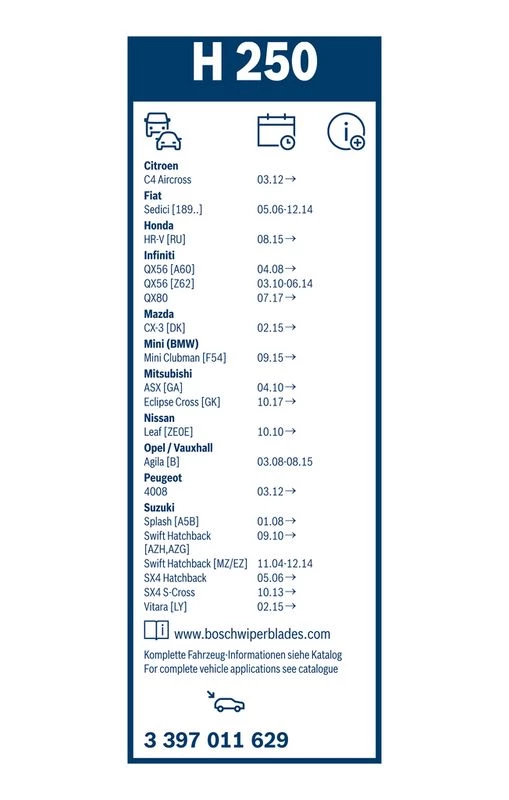 | Wiper blade type | bracket wiper blade |